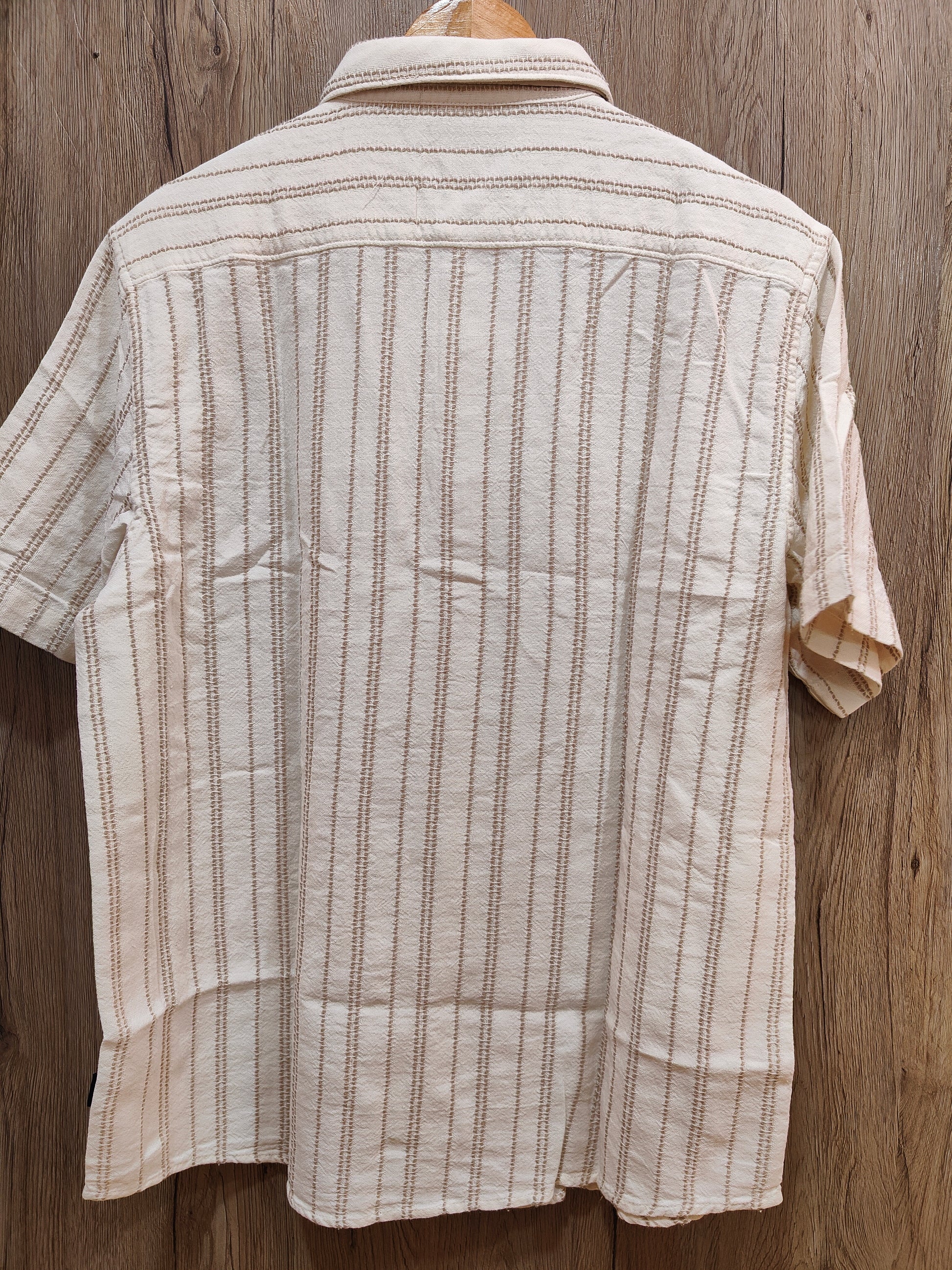 Kutur Men's Beige Textured Striped Cotton Shirt – Westside Manufacturer