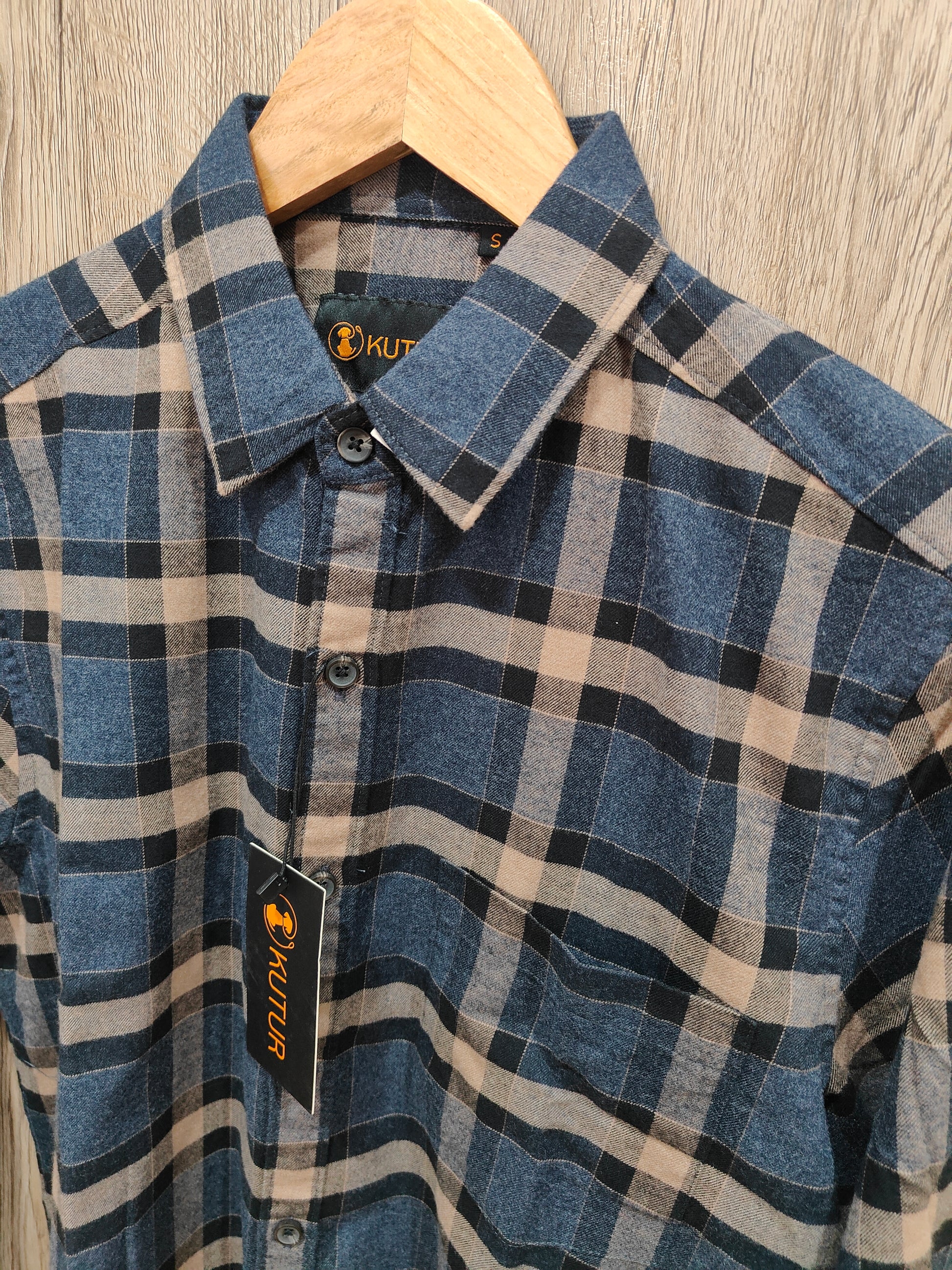 Kutur Men's Blue & Beige Checked Cotton Shirt – Westside Manufacturer
