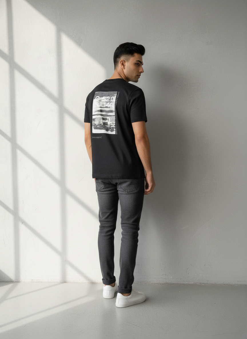 - Back: Large abstract distressed race car graphic with Mercedes-AMG Petronas branding