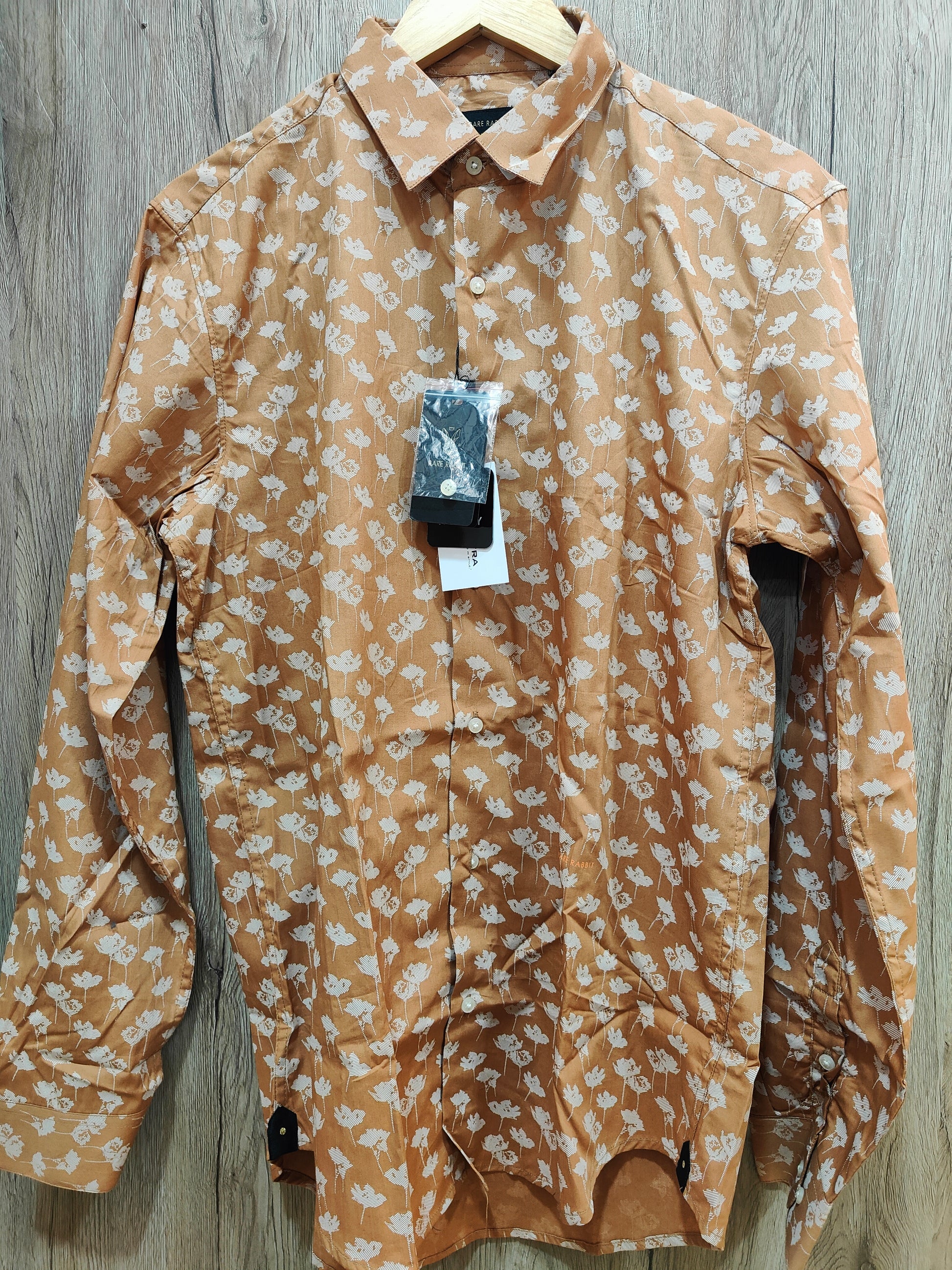 Rare Rabbit Alkaline Floral Print Shirt (Rust Brown & White)