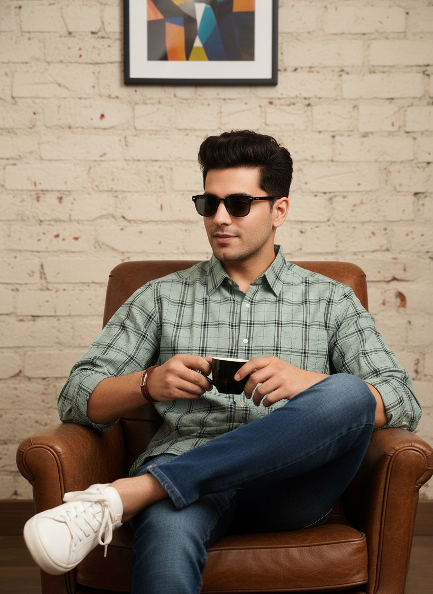Rare Rabbit Men’s Check Casual Shirt (Sage Green)