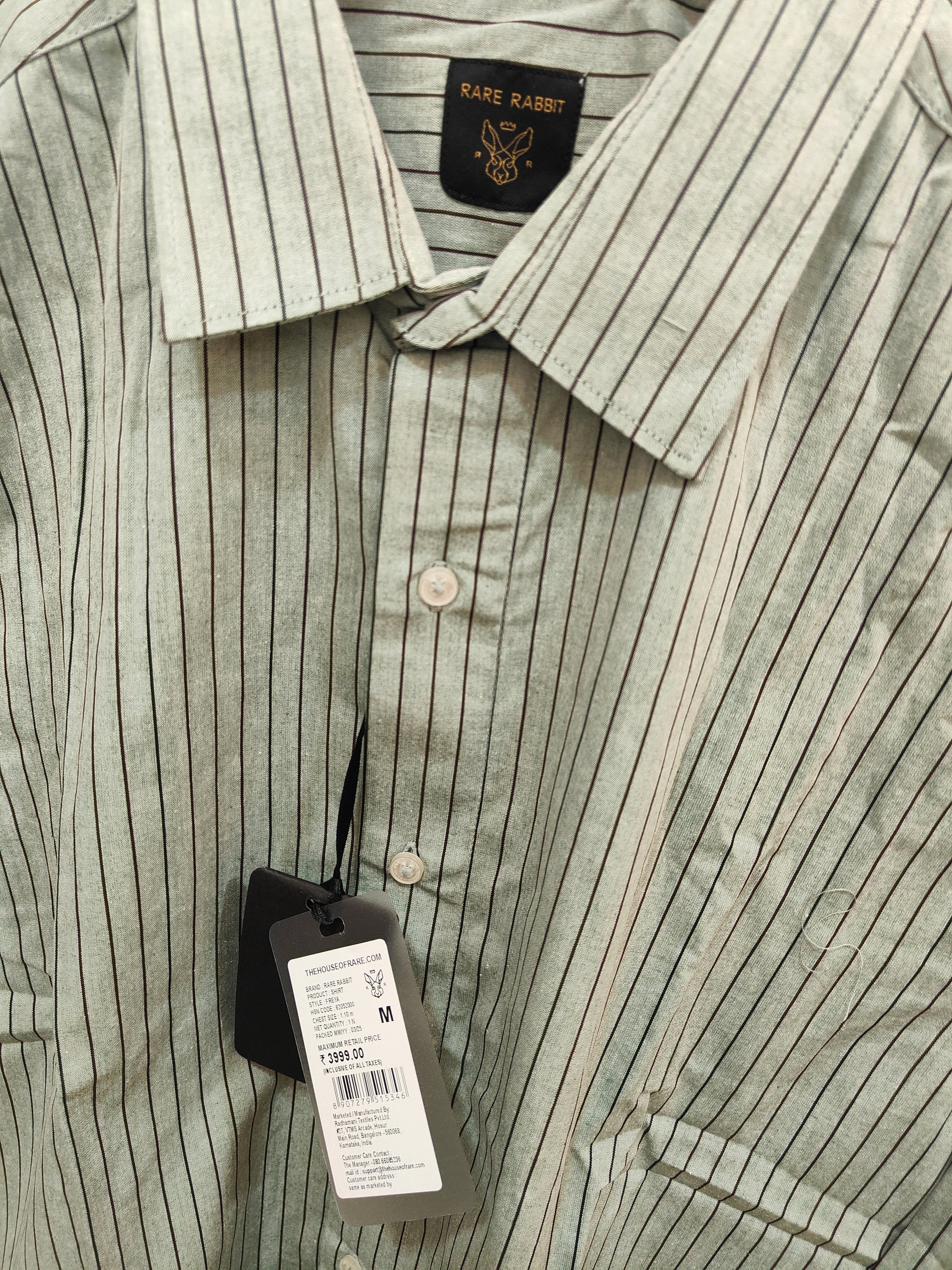 Rare Rabbit Men's Striped Cotton Shirt (Light Gray)