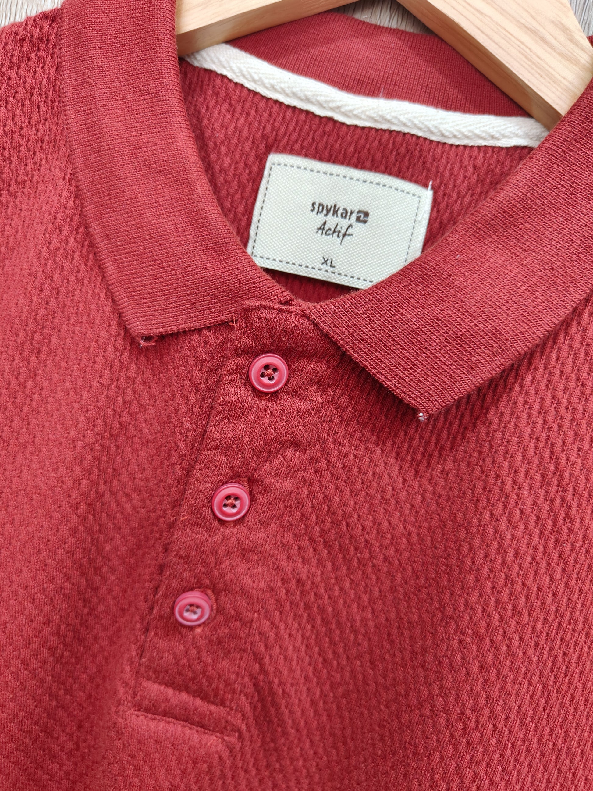 Spykar Textured Men's Polo T-Shirt (Brown)