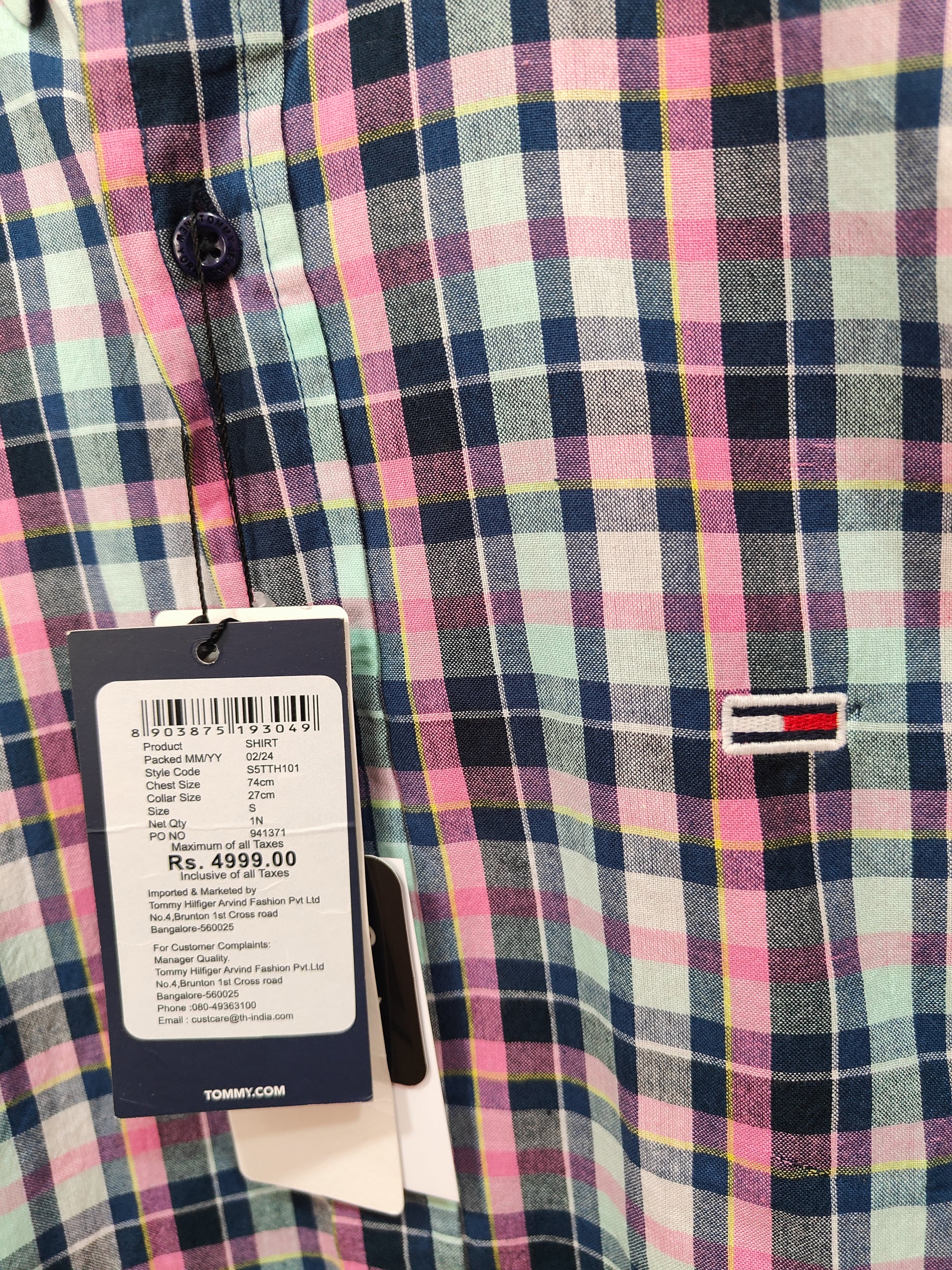 Tommy Jeans Men’s Slim Fit Button-Down Check Shirt – Pink/Navy Plaid