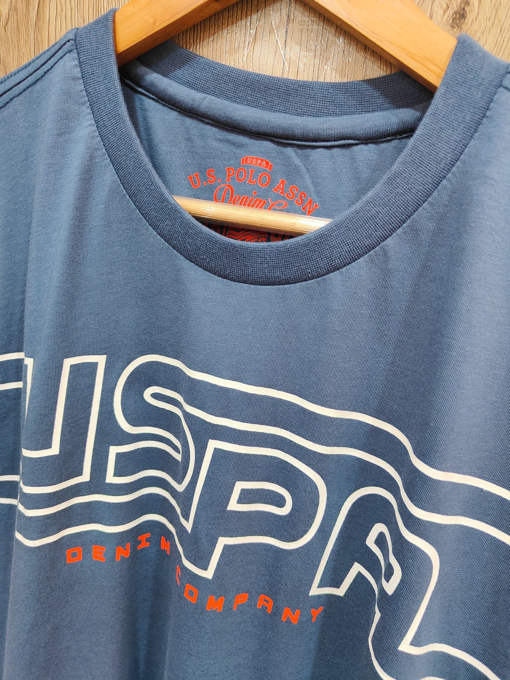 - Design: Bold graphic print on back featuring "USPA DENIM COMPANY" logo and polo rider motif