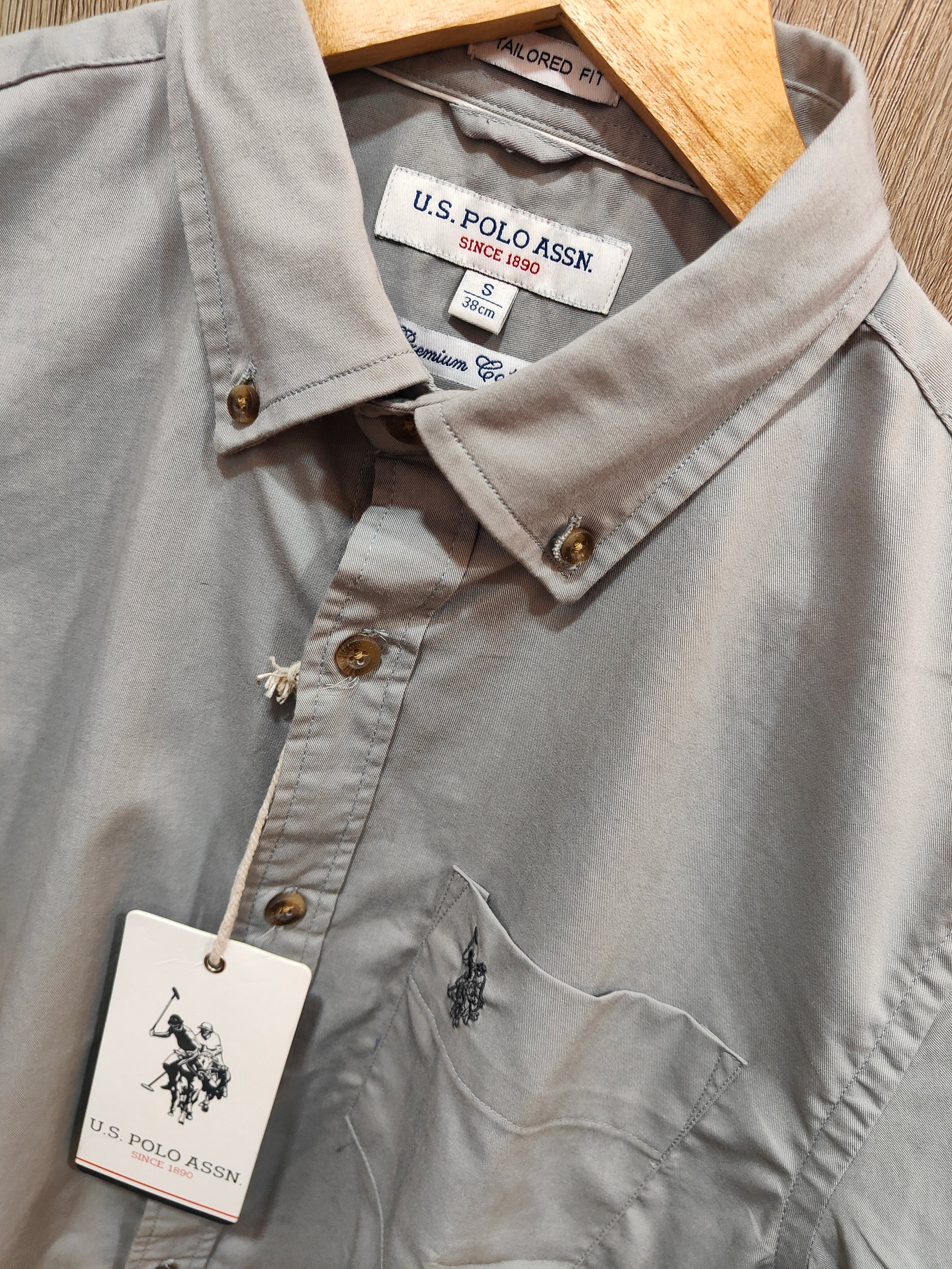 - Logo: Embroidered golden-yellow U.S. Polo Assn. logo with polo player on left chest