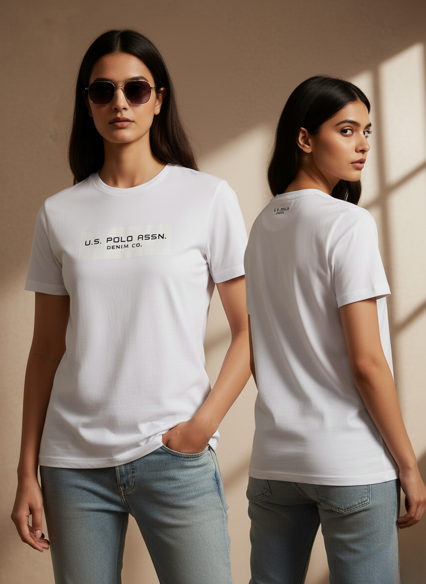 - Pattern/Design: Rectangular chest patch with "U.S. POLO ASSN. DENIM CO." logo